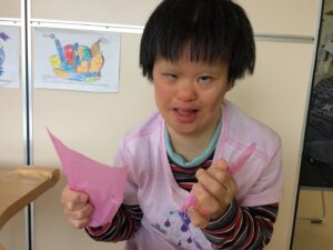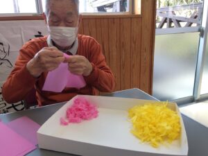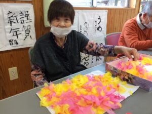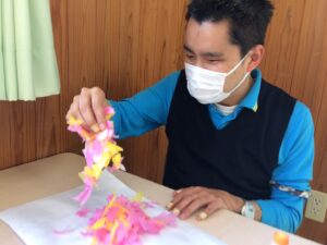 手一杯にお花紙を握って、台紙に貼り付けていらっしゃいました(^^)/