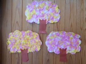 ぷらむはうすでも春を感じられるように、お花紙を使って桜の木を作りました。