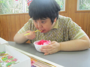 皆さんの待ちに待った 「ぷらむ夏まつり」 を開催しました。この日は残暑厳しく、室内に設置したかき氷店も大忙し。わたあめのお店も賑わっていました。